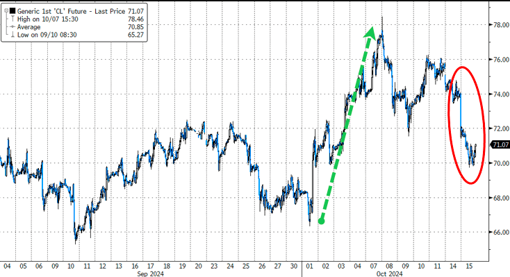 本周迄今,美布两大基准原油价格已双双下跌了约5美元,几乎回吐了投资者担心以色列可能会袭击伊朗石油设施,以报复伊朗10月初的导弹袭击后累计的所有涨幅。